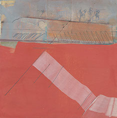 12 x 12 inches oil, pencil, collage on wood panel